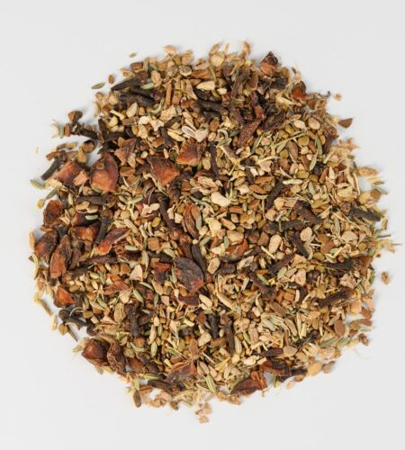 Kolendra, kmin i koper tworzą łagodną, ziołową mieszankę o ciepłym aromacie i subtelnym smaku – idealną po posiłku lub na chwilę równowagi w ciągu dnia.